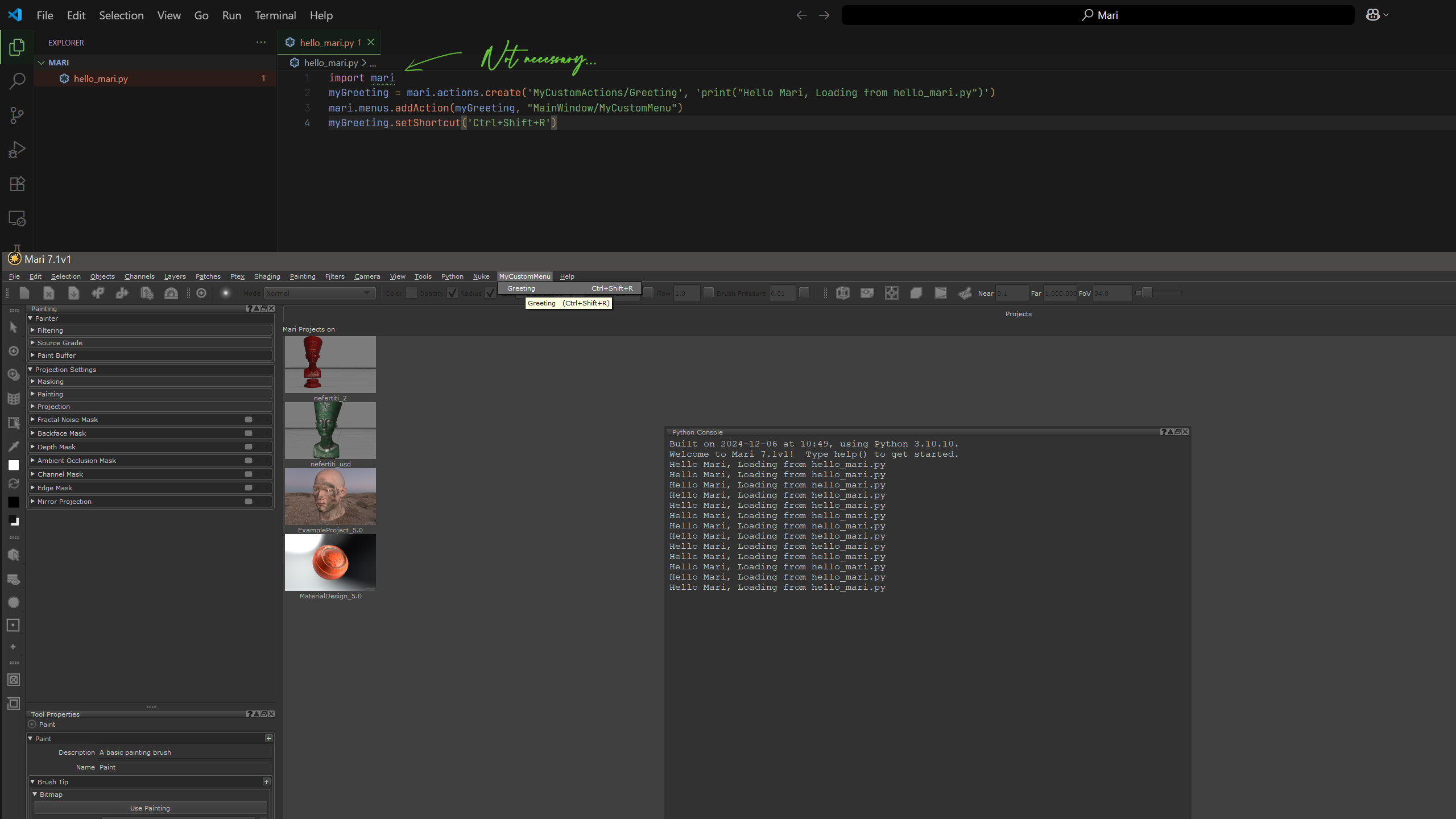 However, VS Code doesn’t know that Mari exists. Without this import, it will flood you with annoying red squiggles and “undefined module” warnings. Adding import mari is mostly for your editor’s sanity, not Mari’s.